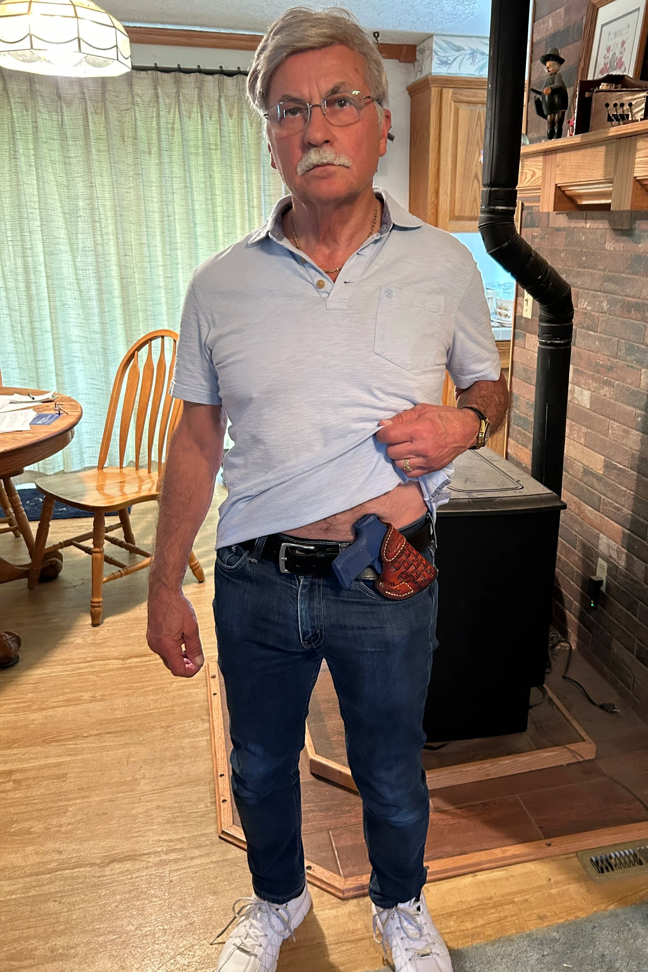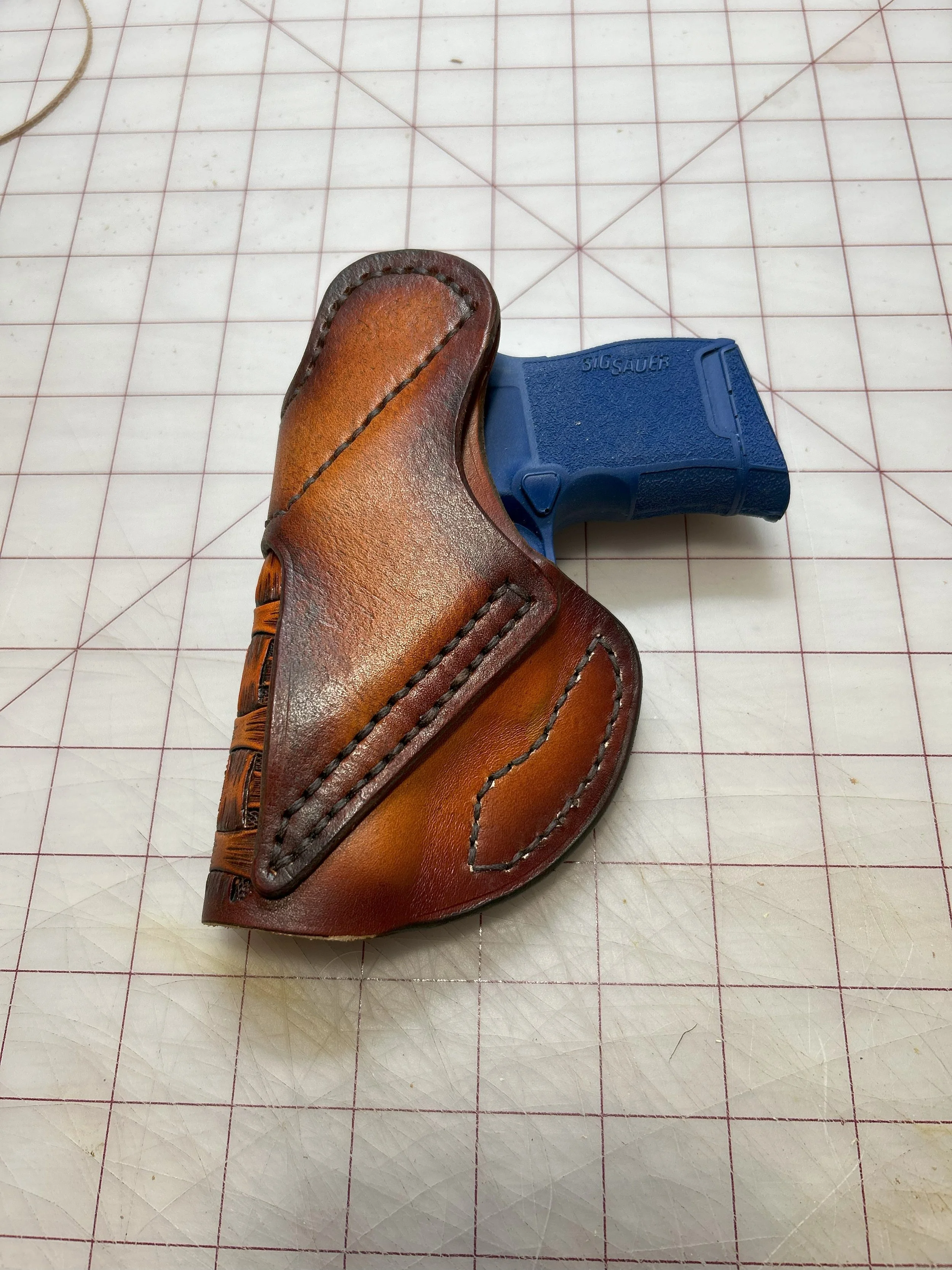This is a Sig Sauer P365 short barrel. With the magnet in the toe and the tilt of the holster, this setup all but disappears on your hip. You may forget it’s there.