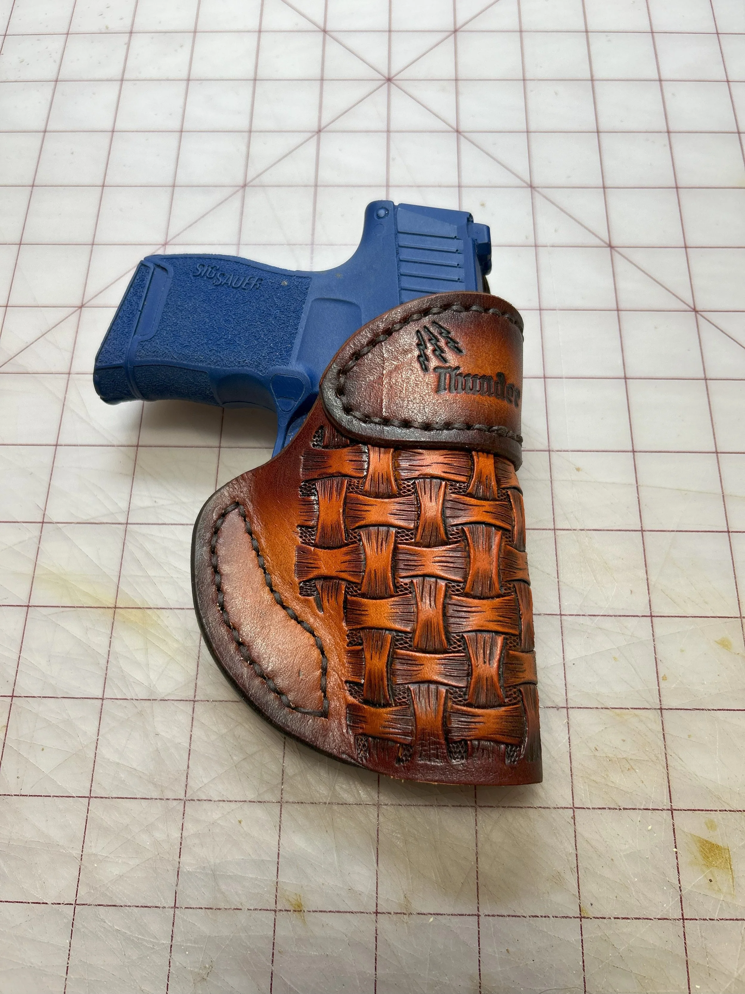 Examples of “Outside the Waist Band” holsters Cross Draw Full Size WeaponToe plug magnet Cross Draw with simple belt clipToe plug magnet Cross Draw Compact WeaponToe plug magnet Strongside with Thumb Break This holster was made for a Sig Sauer P320